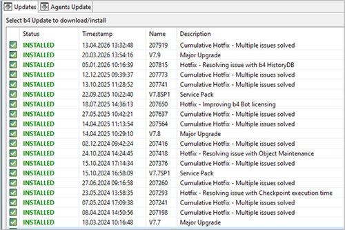 Below, we provide our recommended sequence for updating b4 starting from V7.7. For each new b4 update package, we will maintain an up-to-date list of the update sequence.