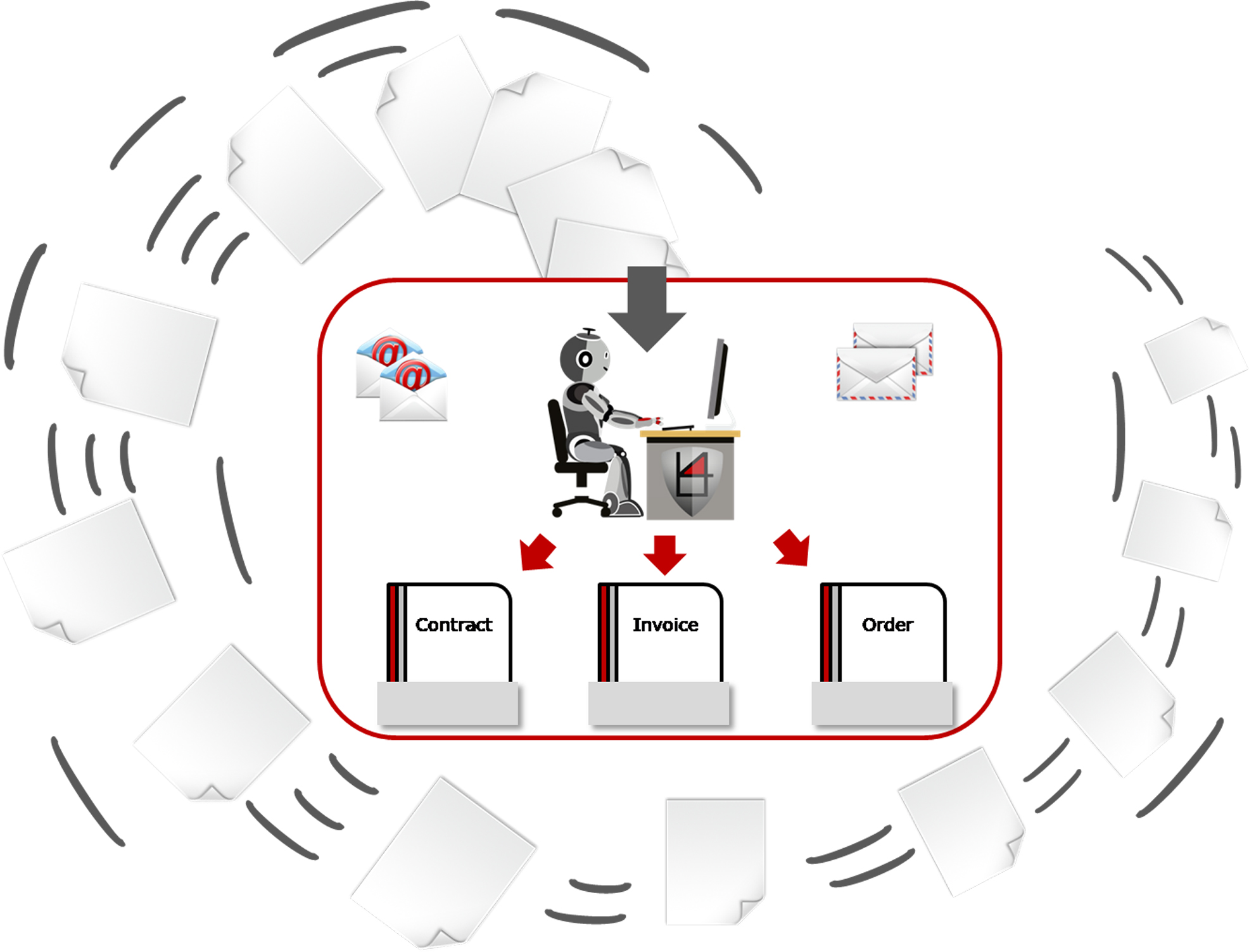 • Document routing: Bots recognise the document type (invoice, order, contract) and forward the data to the correct department.